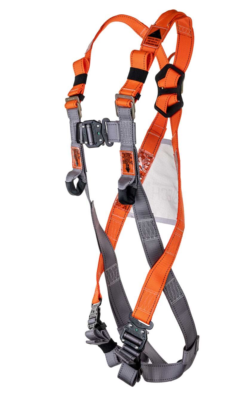 The upper section of the harness is constructed with bright orange webbing for good visibility in daylight